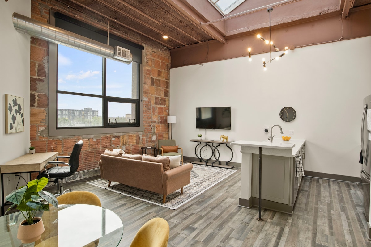 Propriété moderne avec les meilleures vues que Rochester offre de jour comme de nuit ! Le Loft est immense avec des équipements modernes pour rendre votre séjour incroyable. Vous serez accueillis avec un lit king size luxuriant avec les meilleurs oreillers et vous réveillerez avec de grandes gaufres que vous pourrez faire fraîchement chaque matin autour d'une tasse de café ou de thé. Marchez n'importe où dans le centre-ville jusqu'aux principales attractions. Ou restez et jouez au baby-foot ou regardez un film sur le grand écran blotti jusqu'à une cheminée.