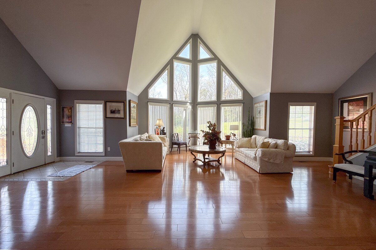 Découvrez votre havre de paix à Kingsrun Estate, un chalet confortable et luxueux de 7 hectares avec un étang serein et un foyer. Sirotez votre café du matin sur le patio, bercé par une douce brise. Parfait pour les escapades romantiques, les retraites en famille ou le travail à distance, à seulement 40 minutes d'Atlanta. Des chambres confortables, une cheminée et des équipements modernes vous attendent. Réservez votre sanctuaire dès aujourd'hui ! Renseignez-vous sur les réductions pour les séjours prolongés et installez-vous dans votre propre coin de nature tranquille, à seulement 40 minutes d'Atlanta.