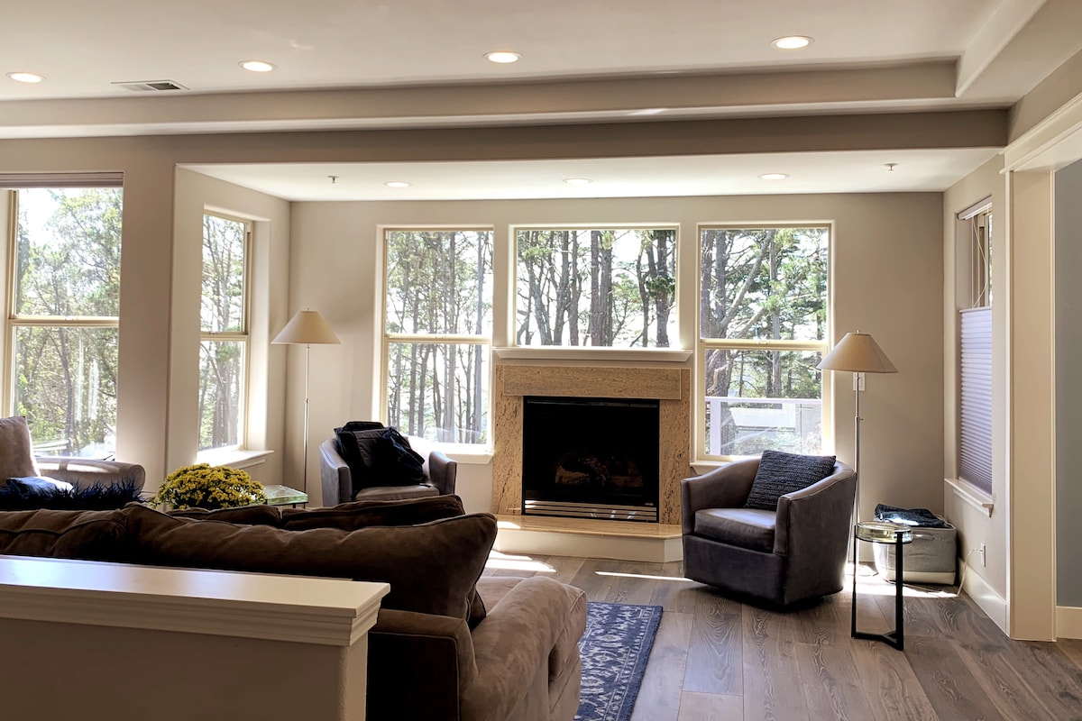 Tranquility awaits in our ocean view home. Enjoy beautiful ocean and mountain views from the living room, deck, kitchen and primary bedroom of this new, modern home. The beach is a brief 2-block walk away. Watch the surf and hear the soothing ocean waves from the deck and from the interior. Hardwood floors throughout the home are warm and inviting, enhanced by the maple quilted or birdseye veneer walls. A modern gas fireplace adds that extra touch of coziness.