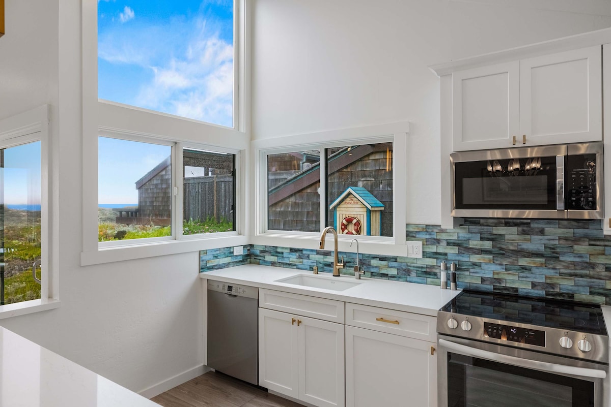 Bienvenue à « Sea Bird » à Moss Landing, en Californie. À mi-chemin entre la péninsule de Monterey et Santa Cruz, la colonie des dunes est un précieux secret en attente de découverte par ceux qui ont la chance de découvrir une beauté brute et non filtrée sur les rivages sablonneux entourant la baie de Monterey. « Sea Bird » est un appartement en résidence de plain-pied récemment rénové où nos clients peuvent vivre luxueusement tout en écoutant alors que l'océan Pacifique soupire éternellement à l'extérieur, sa grandeur encadrée par des fenêtres murales dans le salon principal.