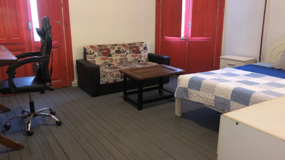 Vivez Montevideo depuis son cœur historique ! Situé sur la rue piétonne Sarandí, à quelques pas de la mer, des musées et des meilleurs restaurants de la ville. Idéal pour les voyageurs en tourisme ou en déplacement de travail: • Wi-Fi rapide, parfait pour le télétravail • Restaurants, cafés, supermarchés et transports publics à quelques minutes • Accès à une salle de sport à seulement 2 pâtés de maisons pour 5 USD/jour (7h à 22h) Tout ce dont vous avez besoin pour explorer la ville à pied 🏙️✨