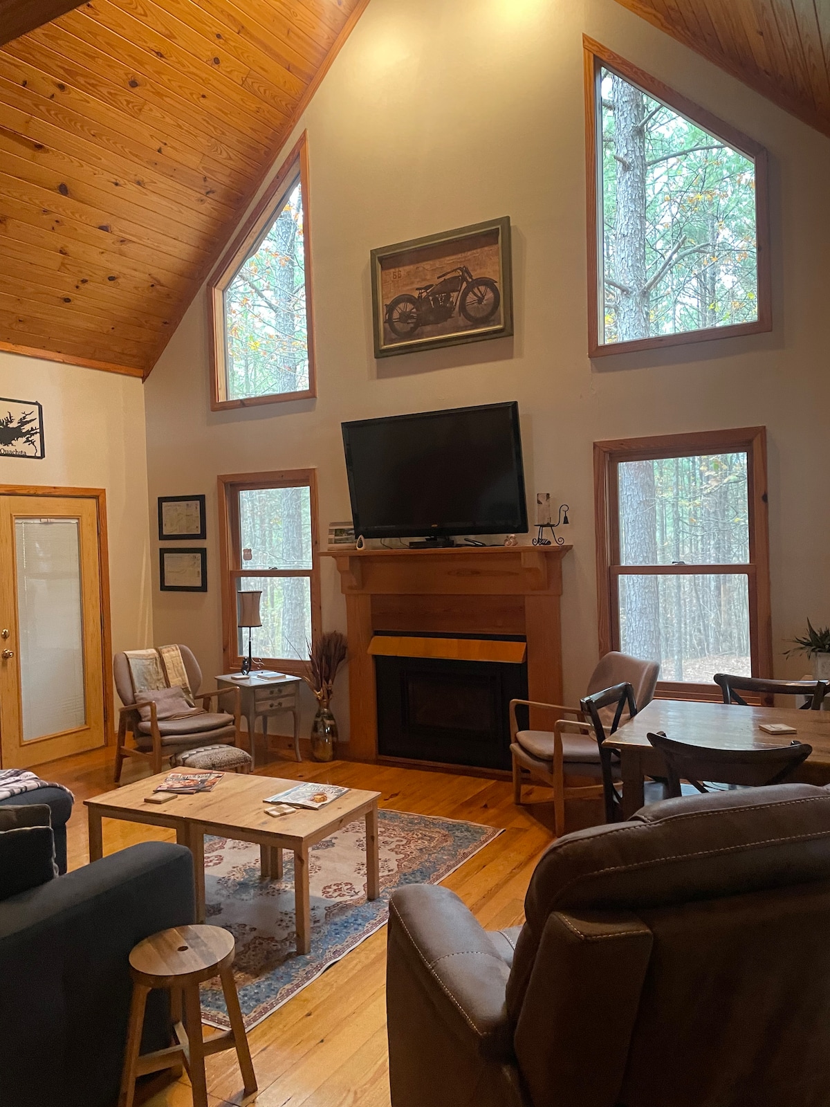 Détendez-vous dans la beauté naturelle et l'environnement paisible de ce chalet pittoresque surplombant la rivière Caddo, en bordure de la forêt nationale d'Ouachita près de Norman, AR et du lac Ouachita. Les activités à proximité comprennent l'accès au lac et aux marinas autour du mont Ida, la chasse aux cristaux, l'accès à la forêt pour la randonnée, le vélo, le VTT et le canoë le long de la rivière Caddo à proximité de Caddo Gap et Glenwood, parmi de nombreuses autres activités et commodités dans les zones touristiques populaires, y compris le parc national de Hot Springs.