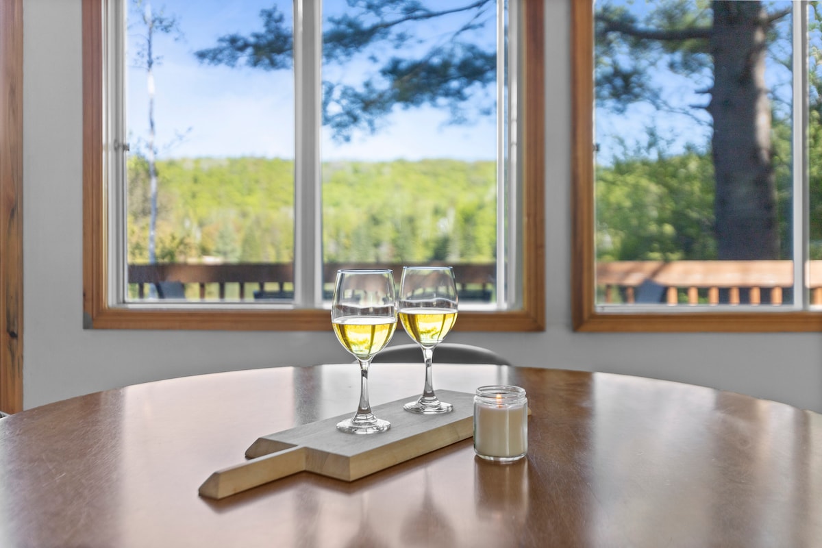 Bienvenue à La Khabine ! Ce chalet confortable et moderne est équipé de tout ce dont vous avez besoin pour vous détendre et vous connecter avec la nature. Dégustez un verre de vin au son d'un feu crépitant dans la cheminée à bois. Admirez la vue sur la forêt à travers les baies vitrées environnantes. Détendez-vous dans le sauna extérieur privé en baril de cèdre. Les produits de soins naturels, le bois de chauffage, le savon à linge et le Wi-Fi haut débit sont tous gratuits. Nous espérons que vous aimerez notre petite cabane de fenêtres autant que nous :)