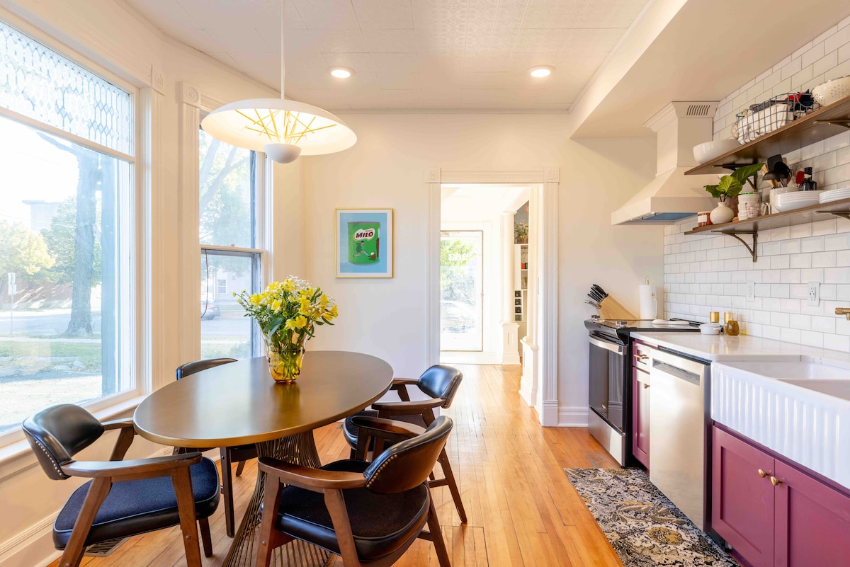 Profitez d'une expérience unique dans ce logement situé au centre. Cette maison de style Craftsman récemment rénovée, avec trois chambres et deux salles de bains, dispose de parquets et d'éléments intégrés d'origine, d'une belle cuisine bien équipée, d'une salle familiale, d'un espace de travail, de lits Queen dans la chambre principale à l'étage et de deux autres chambres à l'étage. Bien qu'à moins d'un kilomètre du centre-ville de Fargo, de l'aéroport, du Fargodome et des artères principales à faire, cette maison se trouve dans un quartier calme et pittoresque qui offre une bonne nuit de sommeil.