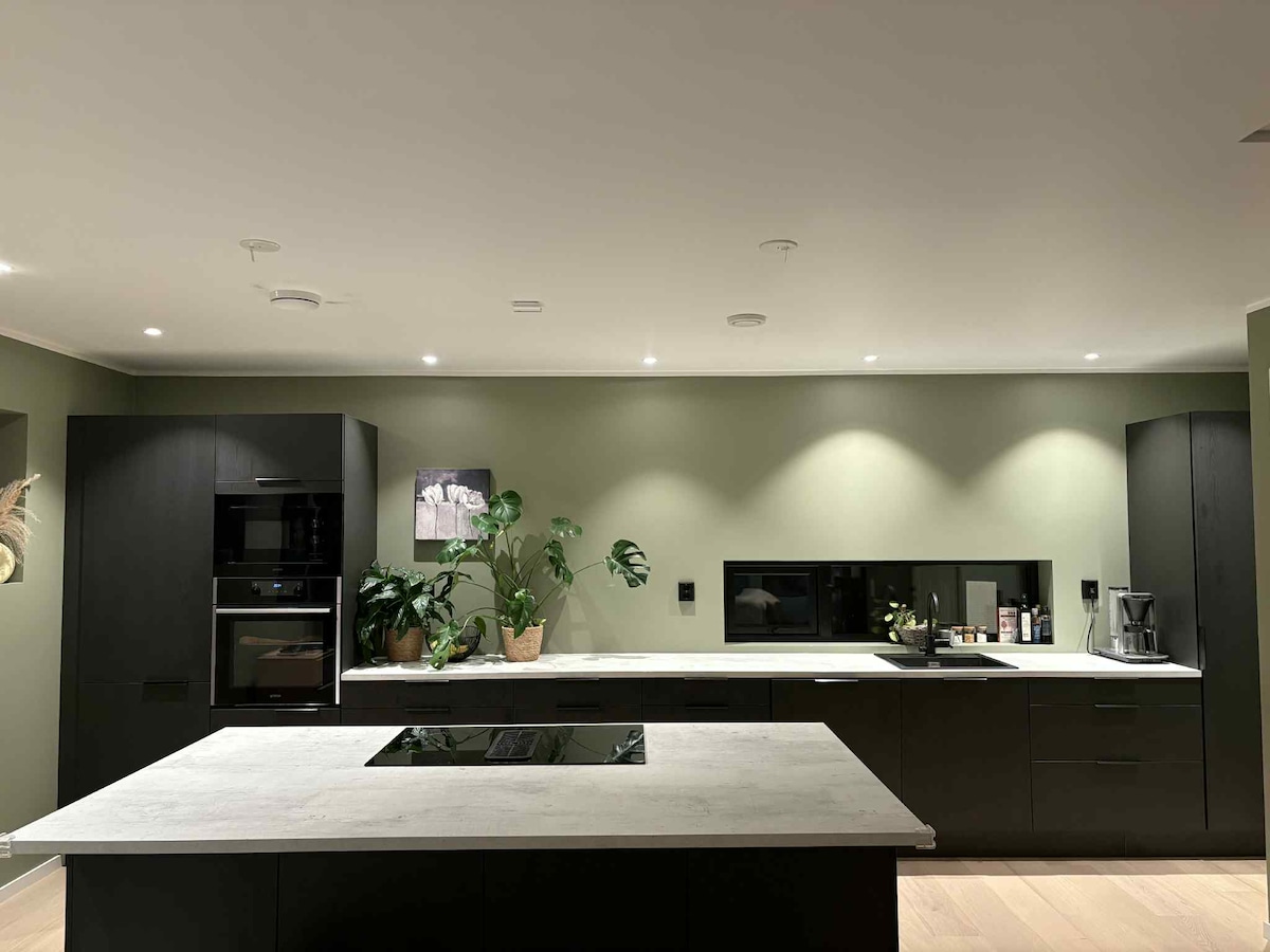 Détendez-vous en famille dans ce logement paisible. Lumineuse, moderne et toute neuve. Parking gratuit à l'extérieur. L'appartement est situé à Jensvolldalen, à une courte distance de grandes randonnées et expériences dans la nature. Court trajet vers le centre ville. L'appartement est meublé de manière moderne et bien aménagé. - Penthouse de 2 chambres au 5ème étage avec ascenseur. - Vue sur les montagnes, la mer et de bonnes conditions d'ensoleillement. - Aire de jeux sur la zone extérieure. - Wi-Fi. - Altibox > Machine à laver - Cuisinière - Micro-onde - Cafetière - Bouilloire - Animaux interdits