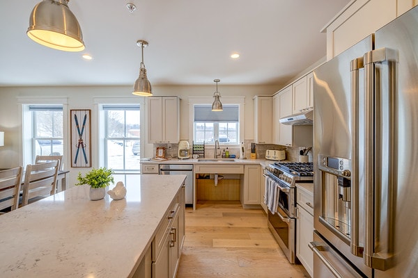Niché sur le lac Lamoille à Morristown, ce bel appartement flambant neuf est à quelques minutes seulement de la ville et offre pourtant la tranquillité et des vues spectaculaires. Le lac abrite des aigles, des hérons, des oies, des balbuzards et des poissons ! Vous verrez des kayakistes pêcher ! Stowe Mt et Smuggler's Notch sont tous deux à proximité. Des brasseries, des galeries d'art et des restaurants se situent à proximité. Vous pouvez marcher ou faire du vélo jusqu'à la piste cyclable de 93 miles de Lamoille Valley depuis notre maison. Notre hangar est disponible pour ranger vos vélos, kayaks ou skis.
