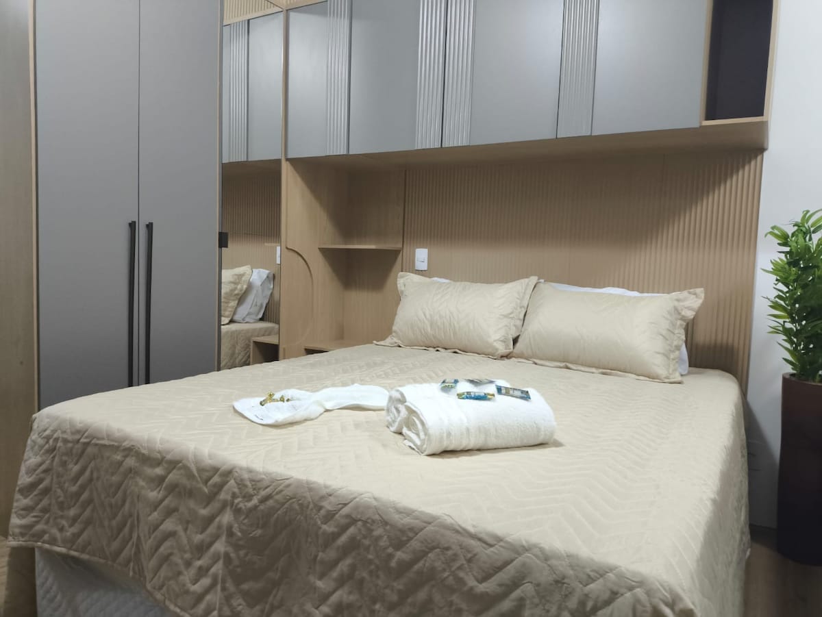 Bienvenue dans notre studio ! Studio neuf, moderne et complet situé à côté de la gare routière de Novo Rio, avec un accès facile au VLT — qui relie directement l'aéroport Santos Dumont et le centre-ville. Préparé avec beaucoup d'affection pour vous accueillir, situé dans une nouvelle copropriété, sûr et avec la meilleure position stratégique pour votre locomotion. Informations importantes : Une fois la réservation confirmée, veuillez envoyer une photo de la pièce d'identité de tous les voyageurs.