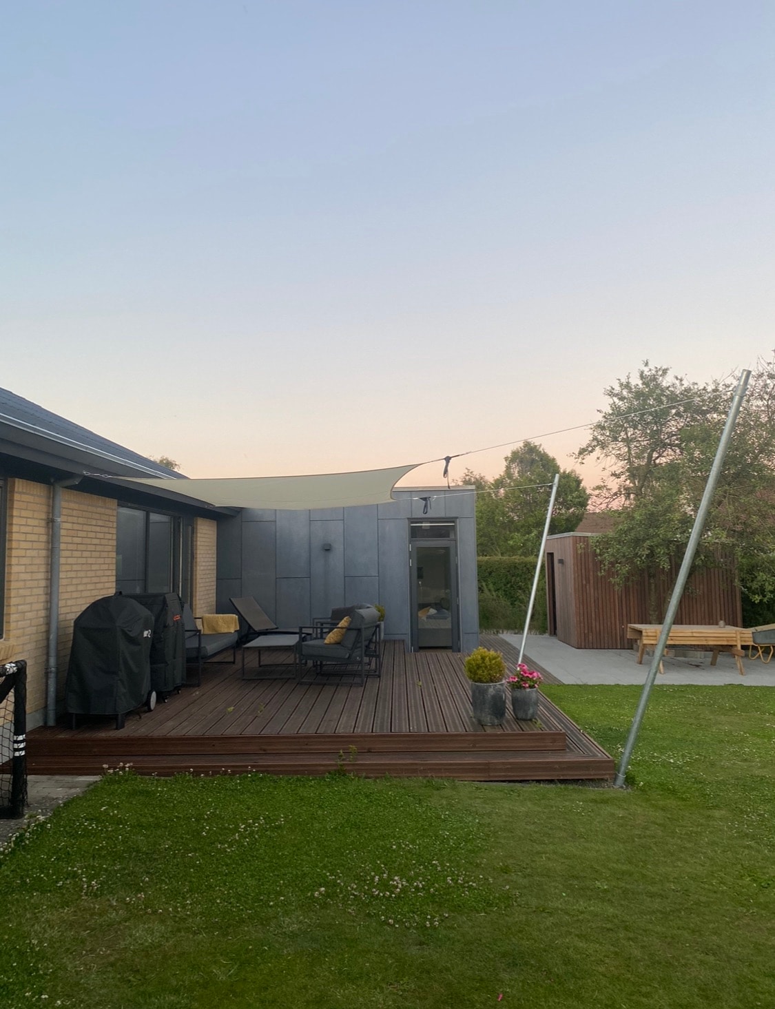 la maison de jardin coloniale est confortable mais pas luxueuse. Le mobilier et le service sont tous achetés dans le recyclage. La maison est située sur un grand terrain clôturé avec un foyer. Il y a une chambre double et une annexe avec deux lits simples. De plus, il y a un canapé dans le salon. la maison est chauffée par des cheminées, du bois de chauffage peut être acheté. Le chauffage électrique est également disponible. 2,5 DKK par kWh. Il y a une petite salle de bain (chauffage au sol) avec toilettes et baignoire. vous devez apporter votre propre literie.