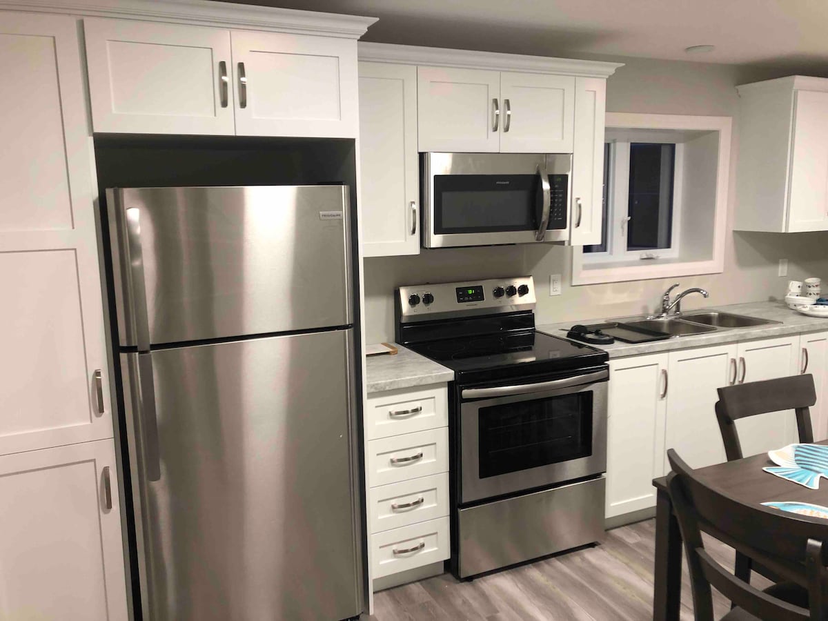Emplacement privé et calme : « Profitez d'une retraite paisible dans cette suite privée au sous-sol, idéale pour la détente et les séjours tranquilles loin du bruit de la ville. » Cuisine bien équipée : « Préparez vos propres repas dans une cuisine entièrement équipée, ce qui facilite les séjours prolongés et les repas faits maison. » Emplacement pratique : à quelques minutes de l'aéroport l'aéroport international de Saint-Jean. Marinas, lacs, océans, sentiers, parcs et un terminal de ferry pour l'île Bell. les transports en commun ou les quartiers populaires], ce qui en fait un lieu idéal pour explorer. »