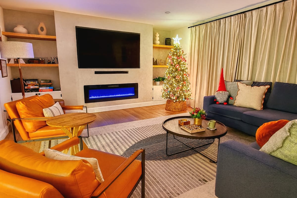 Bienvenue à Oak View, notre escapade de rêve d'inspiration scandinave lumineuse. Nous sommes ravis de vous accueillir chez nous et espérons que vous l'aimerez autant que nous. Endroit relaxant et paisible, Oak View offre de nombreuses touches spéciales, y compris un poêle à bois du milieu du siècle, des haut-parleurs Sonos au plafond, d'énormes portes coulissantes, un foyer extérieur et une vue boisée paisible. À moins de 20 minutes des parcs aquatiques intérieurs, des stations balnéaires et des parcs d'État !