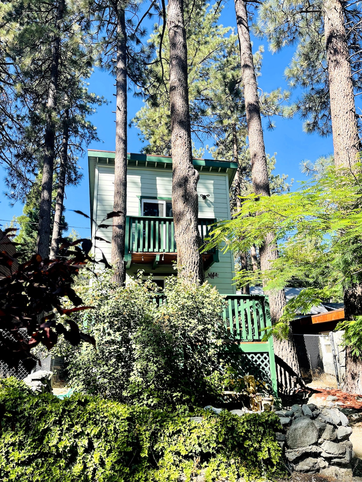 UN CHALET TRIANGULAIRE CONFORTABLE NICHÉ DANS LES ARBRES * À 1 heure de Los Angeles ; * À 3 minutes du lac Gregory ; * À 10 minutes d'Arrowhead Évadez-vous et profitez du calme et de la tranquillité. Détendez-vous sur deux terrasses panoramiques et dans des intérieurs élégamment meublés. Détendez-vous dans la salle de bain spacieuse avec un grand lavabo et une douche à l'italienne spacieuse pour deux. Le lit Queen Size offre une retraite confortable avec vue sur la cime des arbres. Restez connecté avec le WiFi, détendez-vous avec Netflix sur la télévision connectée et utilisez la cuisine complète de ce charmant chalet.