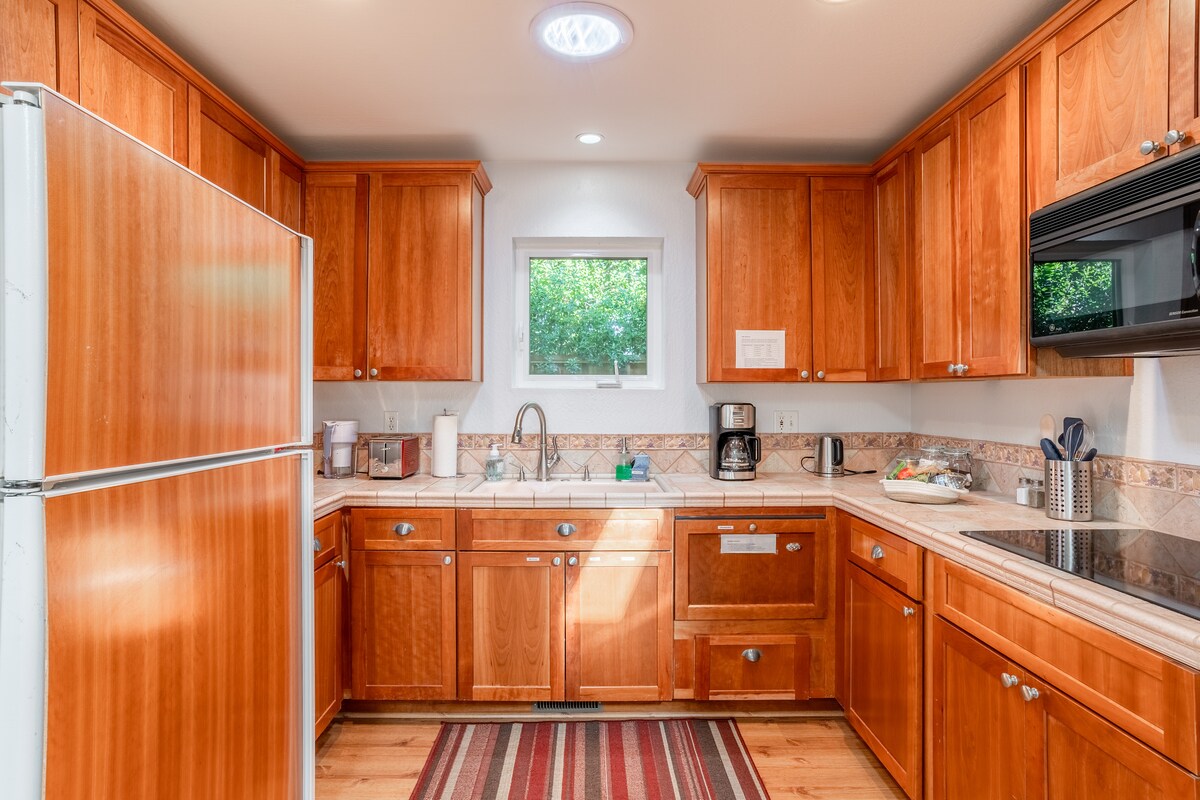Venez vous détendre dans cette suite spacieuse et séparée avec une entrée privée. Utilisez la baignoire pour vous ressourcer après une longue journée ou profitez d'un café ou d'un thé tout en profitant du beau temps californien dans le coin salon de la cour arrière. Si vous aimez cuisiner, vous pourrez profiter de la cuisine avec un réfrigérateur complet, une cuisinière, un four à micro-ondes et tous les éléments de base dont vous aurez besoin pour préparer des repas. Si vous préférez commander à emporter ou manger dehors, il y a beaucoup de restaurants à proximité.