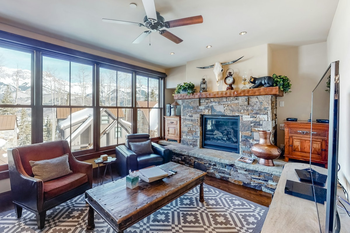 *** 3 new A/C systems installed on 7/27/23*** Ski lift is a 30 second walk from your front door Can see ski lift from your living room window Ski rental shop-10 sec walk Main Street and Restaurants/Bars-1 mile away Grocery Store/Liquor Store-5 min walk Gondola-5 minute walk along river trail Free heated garage parking/ski storage Mtn views from every window and two different decks Riverfront Washer/dryer in home Pet fee is $50/night per pet TOTBL21412