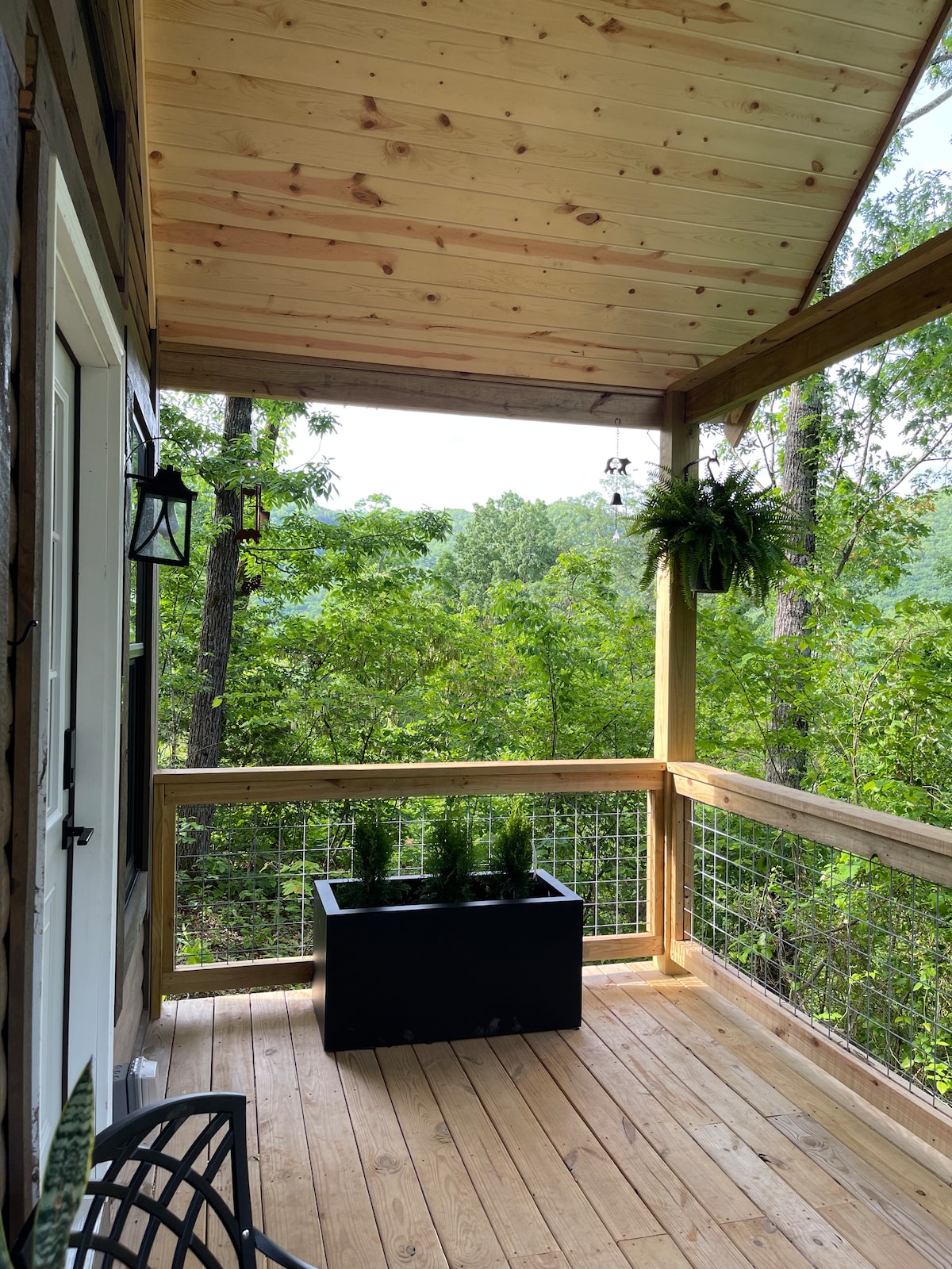 Enjoy tranquil views while drinking your morning coffee or evening glass of wine on the expansive front porch of our cozy 800 SF cabin. This 2 bedroom, 2 bathroom home features a covered front porch and large side deck with outdoor dining and fire pit. The cabin sits on over 1.5 acres so there is plenty of space to enjoy private time in nature. Located 12 minutes from Maggie Valley, 20 minutes from downtown Waynesville, and 30 minutes from Asheville and Cataloochee Valley.