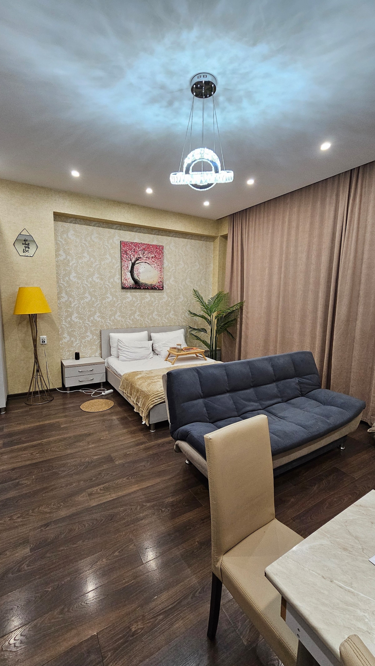 Tout d'abord, je tiens à me présenter, je suis Keti - une artiste et je vous propose de passer d'incroyables journées géorgiennes dans mon appartement que j'ai fait tout seul et avec tout mon cœur. Je suis décoratrice et architecte d'intérieur et comme je ne voulais pas faire une rénovation standard, cela ne ressemble pas à un hébergement hôtelier. Dans cet endroit, j'ai essayé de faire une synthèse enchanteresse d'un décor et d'un intérieur.