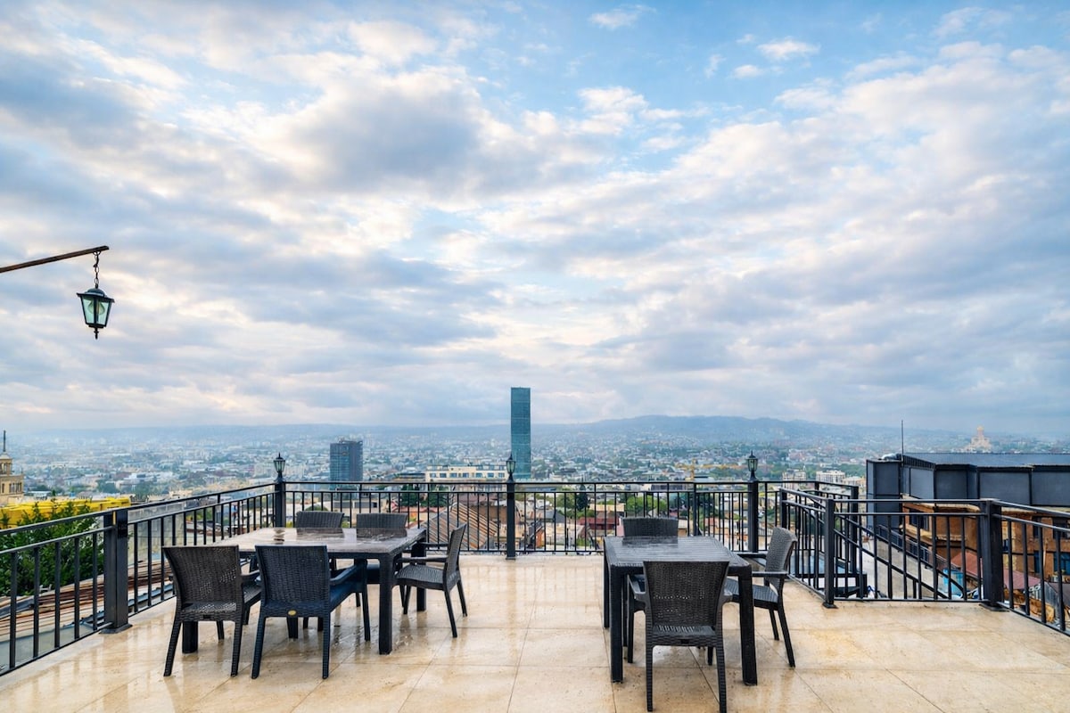 Sunlit terrace with Panoramic Tbilisi Views