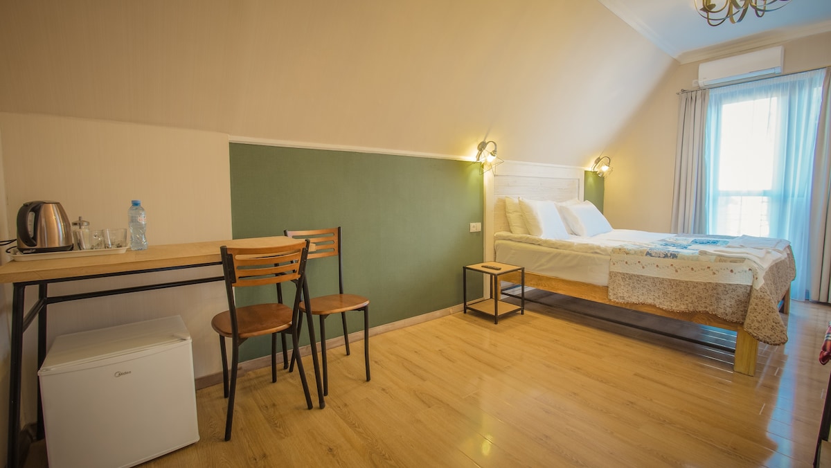Profitez de votre séjour dans cette confortable chambre King au Boutique Hotel Day Inn, situé sur la charmante rue Kiacheli dans le centre de Tbilissi. La chambre dispose d'un lit double confortable, d'une salle de bain privée, d'une connexion Wi-Fi rapide et de la climatisation. Le décor élégant de la boutique crée une atmosphère relaxante parfaite pour les couples ou les voyageurs en solo. Vous êtes à seulement 5 minutes à pied de l'avenue Rustaveli, le principal centre culturel de Tbilissi, avec des cafés, des boutiques et des théâtres à proximité.
