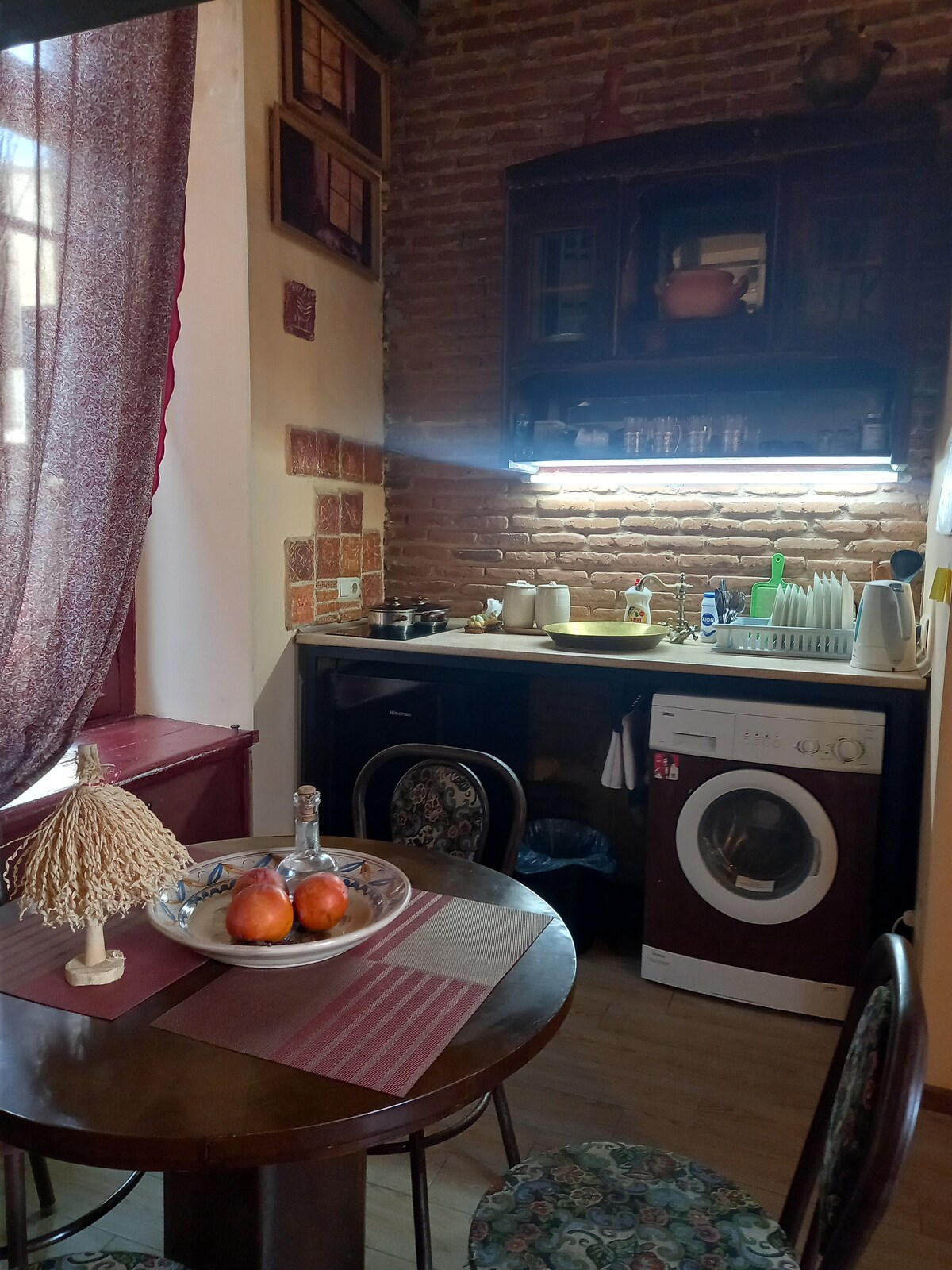 This charming apartment is located in the very heart of Old Tbilisi, just 50 meters from Freedom Square — the city’s most central and vibrant area. All major attractions are within easy walking distance. The apartment is set on the first floor of a historic Old Tbilisi building with a traditional courtyard, offering a peaceful and authentic stay in the heart of the city. It is stylishly decorated, fully equipped, and carefully prepared to ensure a comfortable and pleasant stay.