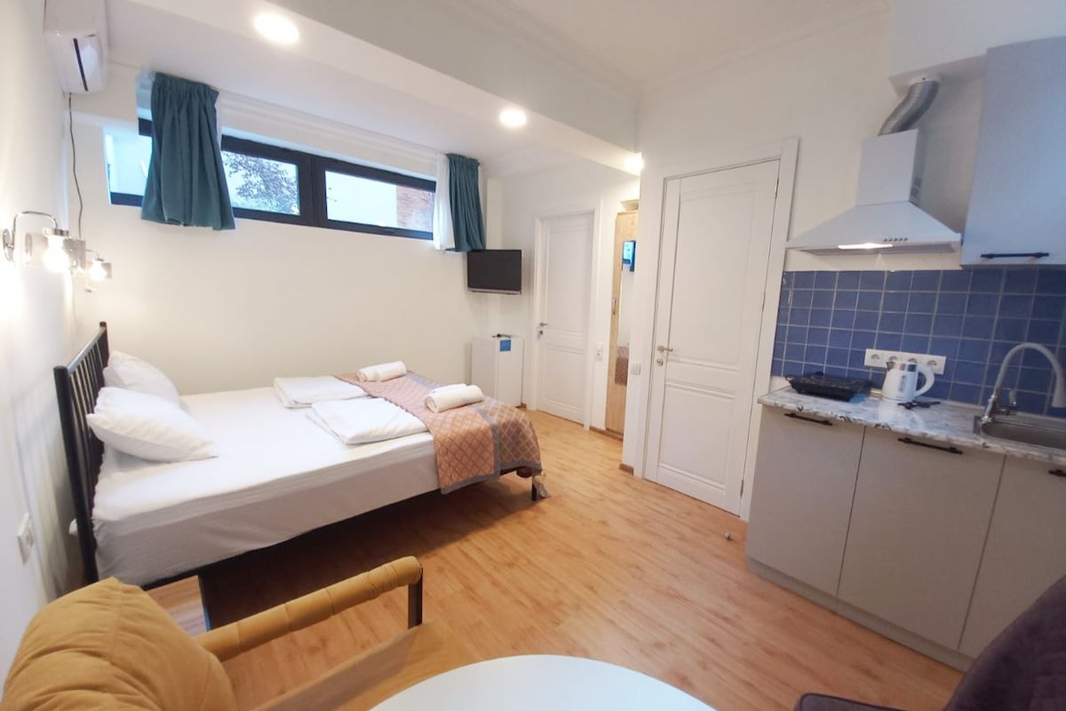 Profitez d'un logement élégant et central. Profitez d'une vue imprenable depuis nos fenêtres tout en séjournant dans cet appartement design inspiré de l'art. Magnifiquement décoré et des chambres recouvertes de murs d'une beauté unique. Cafetière et autres appareils pour un séjour confortable. Qu'est-ce qui distingue mon logement ? - Emplacement, décor, vue. Cette propriété est parfaite pour les couples, qui recherchent un endroit calme et une vue imprenable dans le centre de Tbilissi. Au plaisir de vous accueillir !