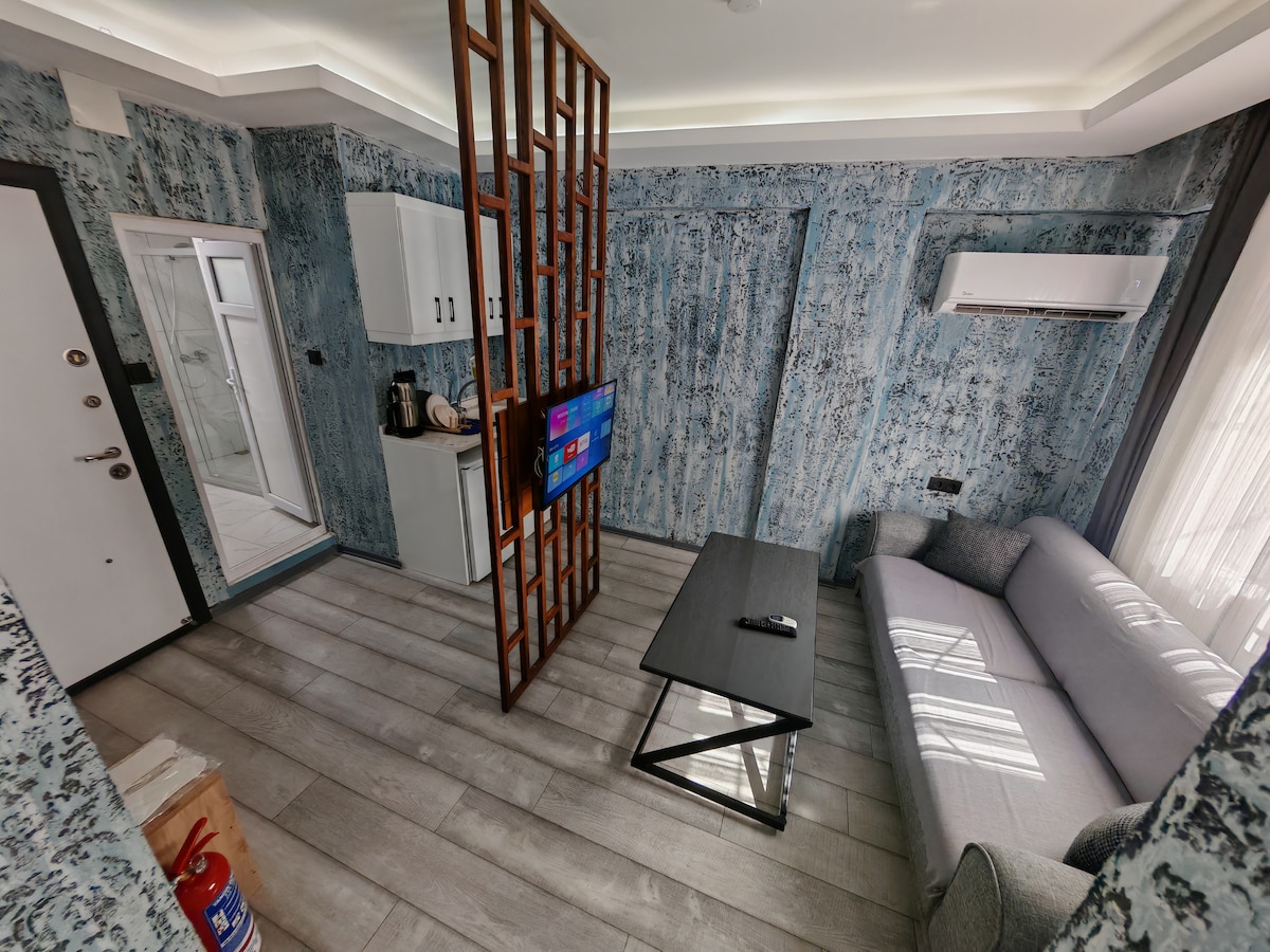 Notre appartement 1+1 spacieux et hygiénique peut accueillir jusqu'à 5 personnes avec 1 lit double, 1 lit simple et un canapé convertible. Vous profiterez du confort de votre maison grâce au Wi-Fi et à la cuisine entièrement équipée de notre appartement, idéal pour les familles et les groupes d'amis. Bursa Görükle offre un accès facile aux transports en commun et aux points de besoin grâce à son emplacement sur la rue Çetin Emeç. Un séjour confortable, sûr et agréable vous attend.