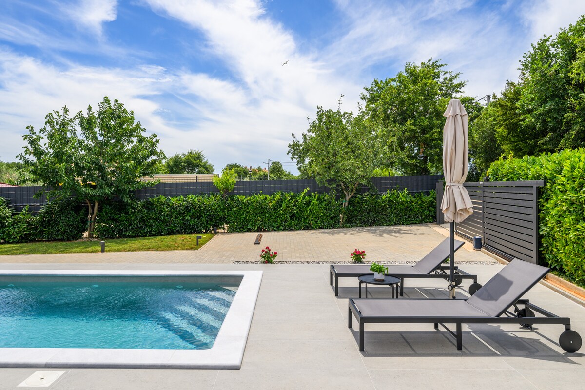 Villa « Qube n'Qube » avec piscine chauffée (supplément de 30.- par jour), 4 chambres avec salle de bains privative et salon ouvert élégant. Situé dans le paisible Loborika, à seulement 6 km de Pula et à 8 km de la mer. Profitez d'un jardin privé clôturé avec terrasse, barbecue et aire de jeux pour enfants. Cuisine entièrement équipée, climatisation partout et téléviseurs intelligents dans chaque pièce. Parfait pour une escapade relaxante en Istrie !