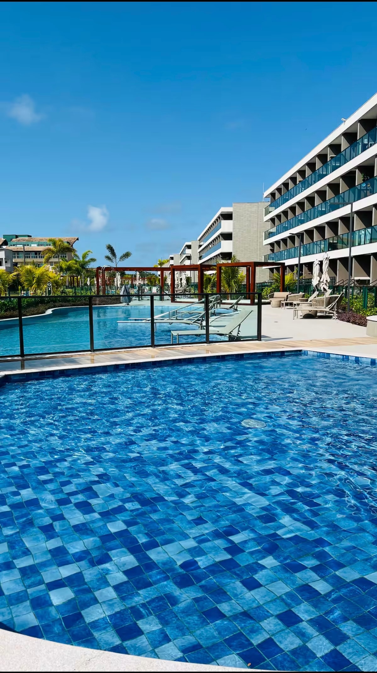 Olá! Nosso Flat fica localizado no Beach Class Muro Alto Resort que fica à beira mar e conta uma das maiores piscinas das Americas com 3.200 mt2, 02 restaurantes, SPA, loja de conveniência, lavanderia e etc. O Flat possui 02 quartos e acomodam confortavelmente 06 pessoas, 02 camas de casal além de 01 sofá cama (casal), todos ambientes dispõem de Ar condicionado e TVs 4K com streaming gratuitos, varanda, cozinha equipada e mesa para refeições. Praia de Muro Alto é uma das mais belas do Brasil.