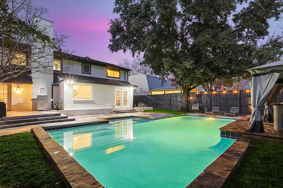 Maison meublée de manière impeccable avec des espaces de vie spacieux et tous les meubles/matelas neufs au cœur de Richardson dans un quartier calme et sûr. La piscine chauffée pleine grandeur et l'immense cour arrière sont un excellent moyen de se détendre et de profiter de moments privilégiés avec vos enfants et votre famille. Le patio dispose d'un mobilier élégant et d'un gril au propane pour compléter le cadre extérieur parfait. Possibilité de se garer à l'intérieur du garage pour 2 voitures. Nous sommes proches de toutes les grandes autoroutes. Des tonnes d'excellents restaurants à proximité.