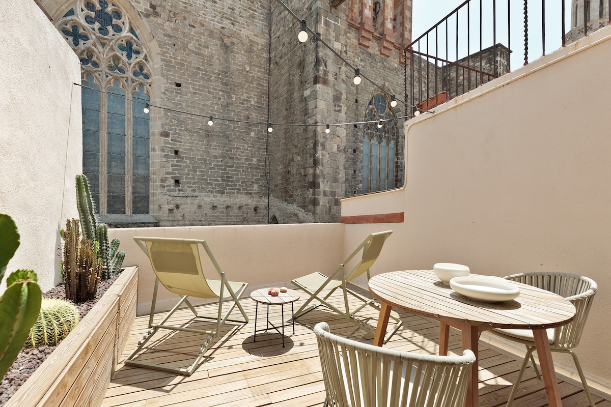 Terrasse avec vue ensoleillée sur El Born, calme, marchez partout