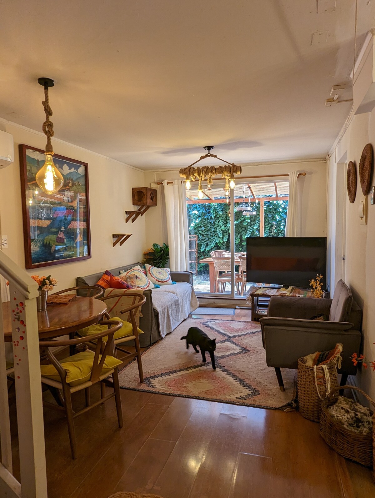 Ubicada a la entrada de la ciudad muy cerquita de la Ruta 5 Sur, sector muy tranquilo, con amplio espacio para estacionar a poco más de 2 kl de grandes supermercados, bencineras , a 20 min. del Salto del Laja. Cuenta con 2 dormitorios, cama 2 plazas, 1 cama de una plaza y una litera, dos baños completos principal en suite, amplia sala, sofá amplio y cocina.Los anfitriones viven al frente. Esperamos en el ingreso al recinto si es de noche para hacer mas expedita su llegada