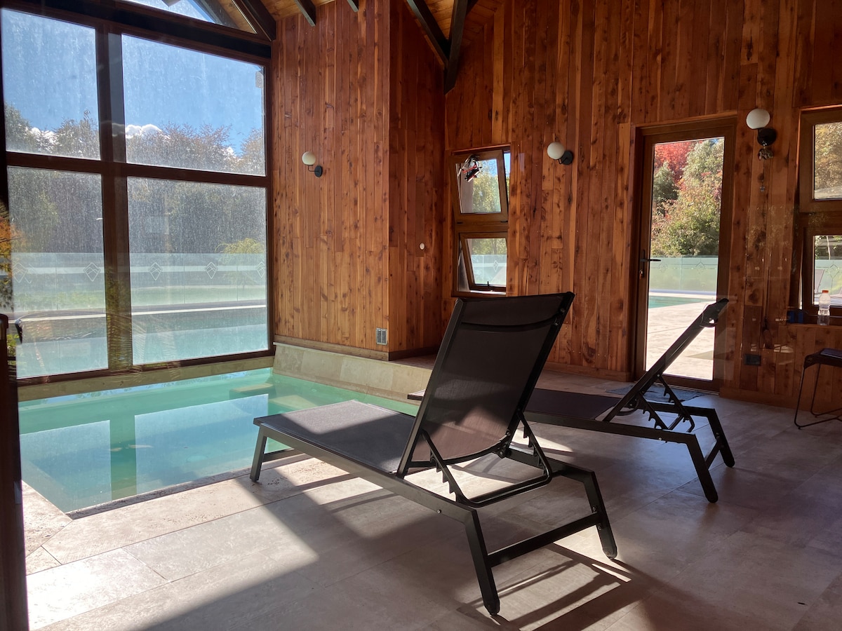 Cabane chaleureuse de style rustique au bord du lac Nahuel Huapi avec jacuzzi, cheminée à bois et terrasse. Monoambiente créé pour la détente et le romantisme avec vue sur le lever du soleil et la lune sur le lac. Smart TV et Internet par FIBRE OPTIQUE avec Wi-Fi pour travailler. Une kitchenette avec tout ce dont vous avez besoin, y compris une cafetière Dolce Gusto. Coffre-fort pour protéger vos ordinateurs portables lorsque vous vous promenez. Salle de bain complète. Piscine, ping-pong. Plage : kayak et standup paddle. Petit déjeuner continental.