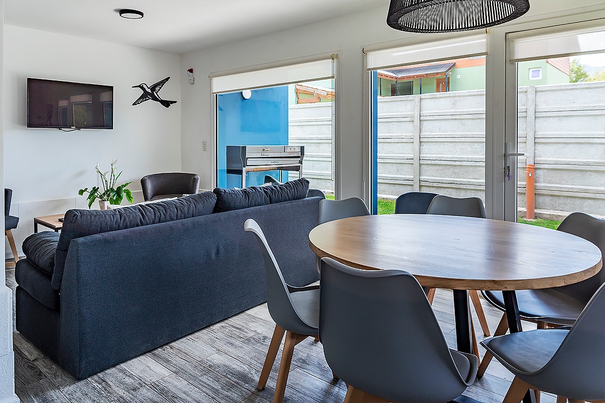Situé dans le quartier El Once, à seulement 500 m de l'avenue principale, le complexe Calafate allie confort et tranquillité à Villa La Angostura. Nous proposons des maisons équipées pour 2 à 6 personnes, avec cuisine complète, dalle chauffante, salle de bain moderne, Smart TV avec Netflix et Prime, patio, balcon et espace vert. Parking découvert et système d'alarme. Idéal pour profiter, se reposer et se sentir chez soi.