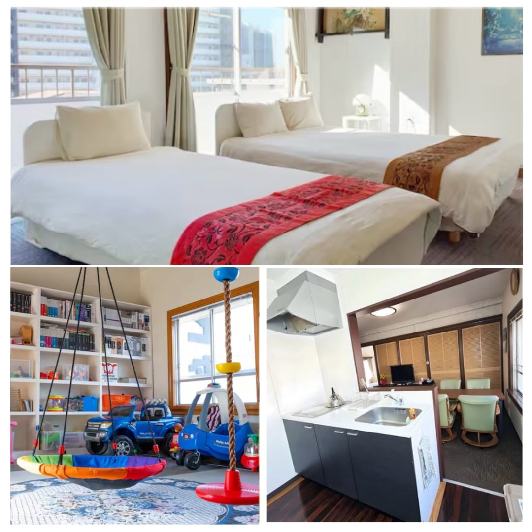 A private house just a 9-minute walk from Taisho Sta. The house features 2 Japanese-style rooms and 1 Western-style room with 6 semi-double beds, perfect for groups or families up to 12 guests. Relax in a private sauna for 2 with löyly, up to 110°C for a refreshing experience. Great access to Namba, USJ, and Tsutenkaku. Fully equipped with kitchen, Wi-Fi, washer, amenities, and on-site parking for a compact car. Shops and restaurants are nearby. Enjoy a special and convenient stay in Osaka!!