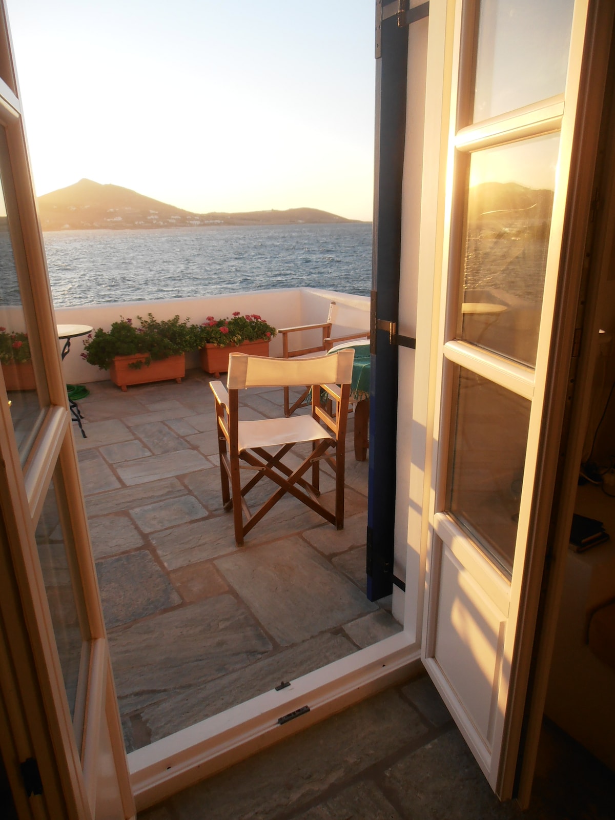 4 bedroom villa in Paros, on the seafront. Spacious terraces on two levels offering unrestricted view towards the sunset and the harbour-Venetian castle of Naoussa. Small bay in front of the house where one may swim. Pleasant two-minute walk to the village centre and all amenities. We are happy to welcome our guests in person at any time until 11:00 PM. Alternatively, self check-in is also available Please let us know if you prefer not to have an in-person check-in.