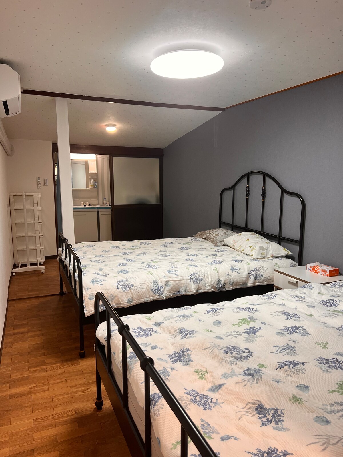 京阪線古川橋駅から徒歩3分、110平米、2階建の戸建て貸切です。 (シェアハウスではありません) 1階には大きなリビングとダイニングルームとフルキッチン、2階には4つの寝室、1階と2階にトイレがあります。家の前に駐車場、喫煙スペースがあります。詳しくは JAPAKUのホームページ、グーグルマップ、インスタ等をご覧下さい。 玄関先にアルコール及び大型宅配boxを設置しています。また現在、長期滞在の方に価格等で柔軟に対応しますのでご一報してください。姉妹ゲストハウス:JAPAKU@KADOMA 05も同様対応中です。 関西空港から70分、新大阪から40分、伊丹空港から55分です。名神吹田ICから20分、第二京阪門真ICから10分です。当レンタルハウスの近隣には2つのスーパー、イオン及びSATAKE(いずれも徒歩2分)があります。また多くのレストラン、コンビニがあり、短期旅行から長期滞在まで問題なく過ごしていただけます。 大阪市内、京都、奈良、神戸等への観光地には京阪電車や各種電車を利用すれば便利です。また車での観光も、インターチェンジが近くにあり大変便利です。