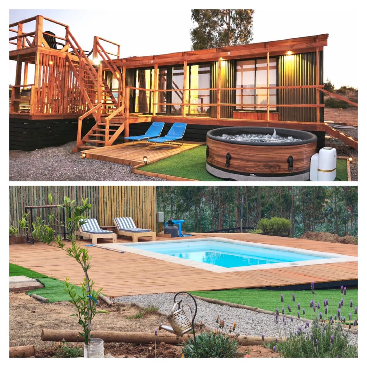 Connectez-vous avec la nature lors de cette escapade inoubliable. Tiny House pour 4 personnes avec piscine et vue sur la mer, entourée de forêt sur un terrain de 6 000 m2. Idéal pour les couples, les familles avec enfants ou les personnes qui veulent travailler avec une vue unique. Elle est située dans le meilleur quartier de Pupuya dans la forêt, près de la mer. Proche de la zone humide de Pupuya et de Matanzas, l'un des meilleurs endroits pour le kitesurf et le surf au Chili, ainsi que des restaurants.