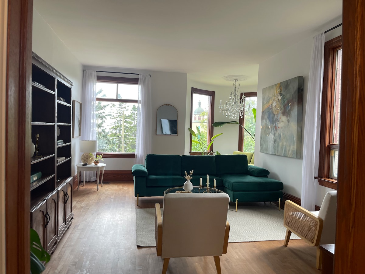 Bienvenue chez Three Black Cats. Un design moderne du milieu du siècle qui a des chats dans le design seulement, pas réellement dans l'unité ;) L'unité offre un accès privé à vous seul et dispose d'un sous-sol lumineux, d'une chambre avec une petite cuisine bien équipée et d'un salon avec une salle de bain quatre pièces. Ce logement est situé dans une maison du siècle et dans un quartier entouré d'autres maisons historiques et d'un parc. À 10 minutes de l'aéroport et de la Transcanadienne.