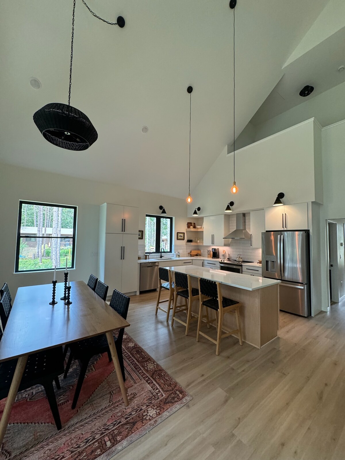 Logement design 🌲 flambant neuf près de Sand Valley Golf Salon 🎮 d'arcade : Skeeball, Tee Golden, coureurs rapides et furieux Salle de 🎬 théâtre avec son surround + station de pop-corn 🛏 12 couchages : 4 chambres, dont une chambre avec lits superposés et 8 lits jumeaux 🔥 Grand jacuzzi, brasero, terrasse avec barbecue et intimité boisée 🍽️ Cuisine de chef, véranda, intérieurs de luxe partout Accès à 5 🏖️ $ / jour aux piscines, à la plage et aux courts de Lake Arrowhead Vos vacances de rêve commencent à Modern Pines, une propriété d'escapades dans le Wisconsin ! ✨