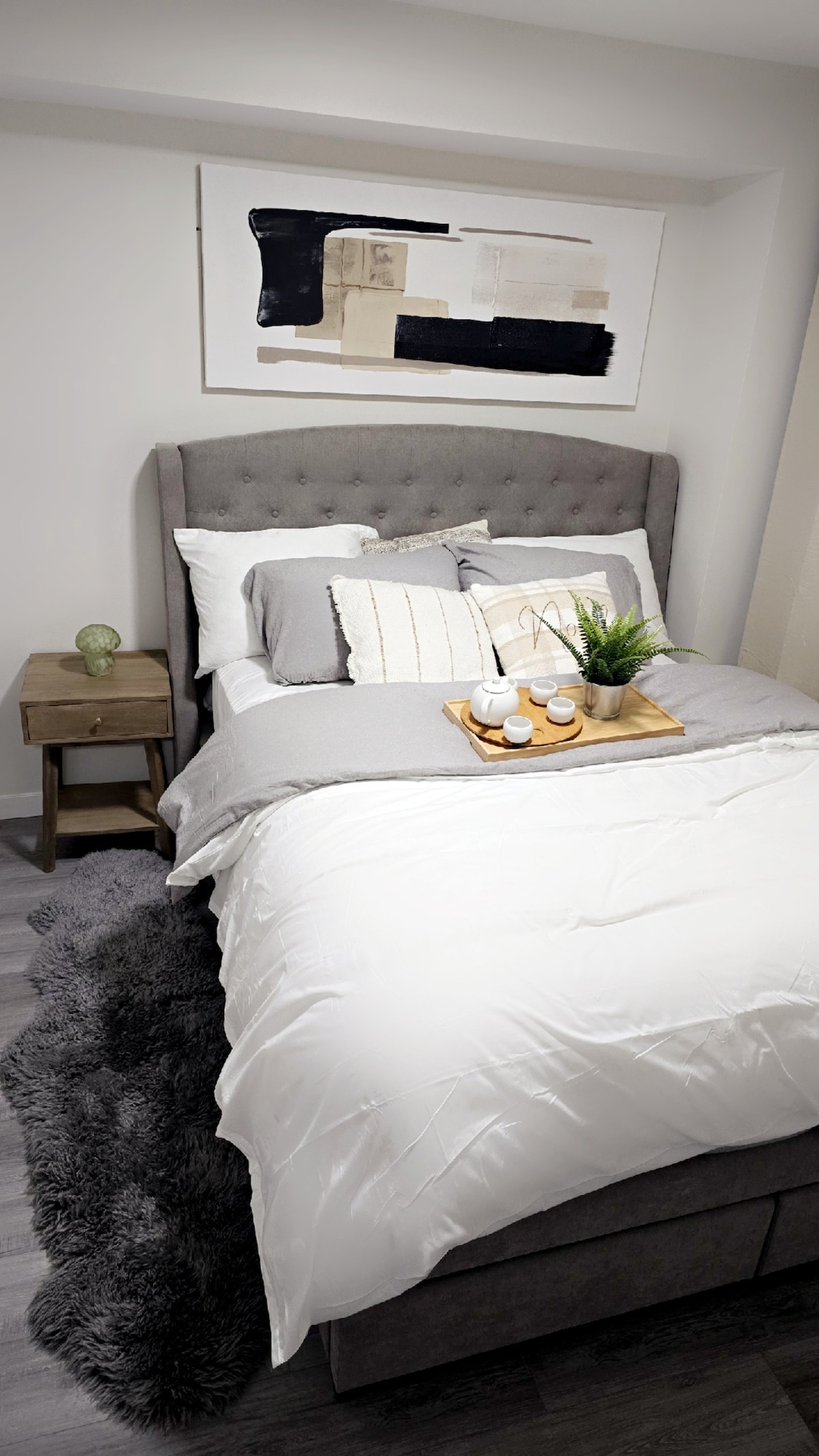 Vous vous sentirez chez vous dans cette belle suite au sous-sol de 2 chambres avec entrée privée. Chaque détail a été soigneusement pensé pour votre confort et votre commodité. Elle comprend une cuisine moderne et entièrement équipée, parfaite pour les séjours courte durée et prolongés, des lits et des draps de qualité hôtelière, des ports de charge USB et un canapé en cuir inclinable. Idéal pour les travailleurs de passage, les étudiants, les visiteurs qui reviennent voir leur famille ou ceux qui ont besoin d'un hé temporaire entre deux maisons. Découvrez le charme d'une petite ville avec les commodités d'une grande ville.