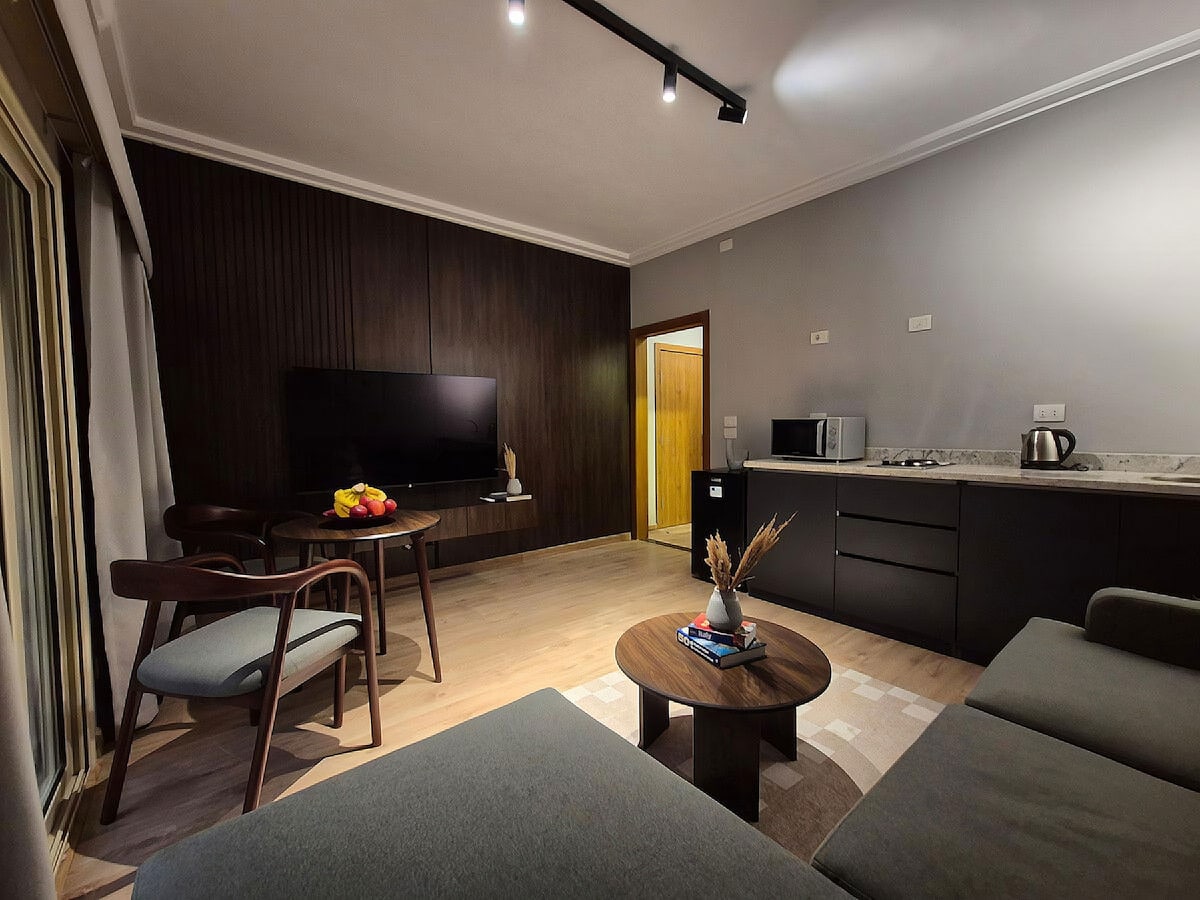 Découvrez le confort d'un hôtel dans un bâtiment entièrement privé situé dans l'un des quartiers les plus haut de gamme du Nouveau Caire, à quelques pas des meilleurs centres commerciaux, cafés et restaurants. Profitez d'un soutien du personnel 24h/24, d'un service de ménage quotidien, d'un entretien rapide, d'une connexion Wi-Fi haut débit, de serrures intelligentes dans chaque logement et d'une couverture de vidéosurveillance extérieure complète. Parfait pour les voyageurs d'affaires et de loisirs à la recherche de confort, d'intimité et de sécurité.