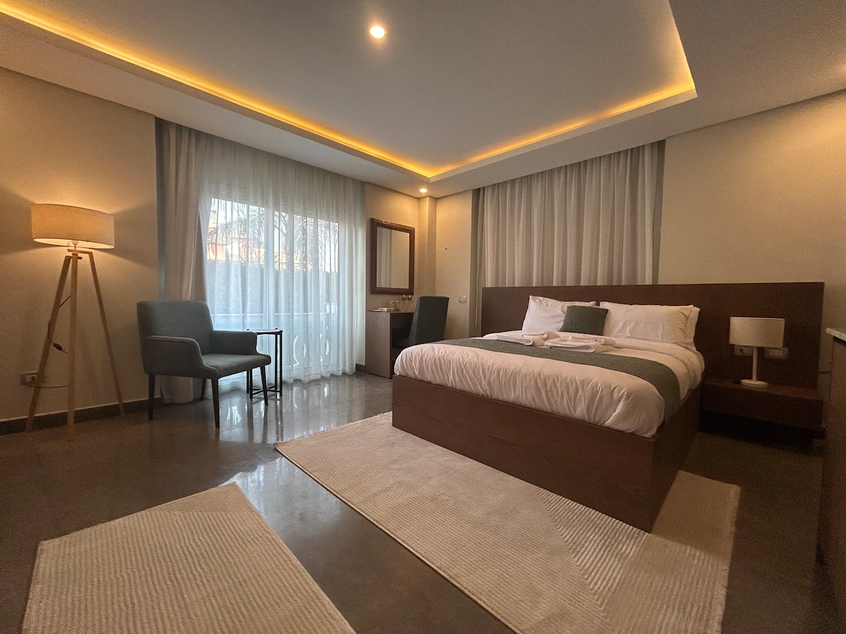 Évadez-vous dans ce studio paisible du rez-de-chaussée, avec un lit confortable et une vue privée et sereine sur le jardin. Avec un accès direct à la piscine à quelques pas, c'est l'endroit idéal pour se détendre et se ressourcer. Que vous profitiez d'une baignade ou que vous profitiez d'un environnement tranquille, cette retraite confortable offre tout ce dont vous avez besoin pour une escapade relaxante. Idéal pour les couples ou les voyageurs seuls à la recherche de confort et de commodité dans un cadre serein.