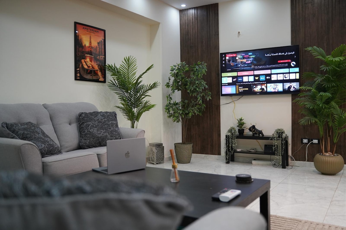 Bienvenue dans notre élégant appartement de 3 chambres, parfaitement situé à seulement 5 minutes de la 90e rue et de l'université AUC, à 15 minutes en voiture du centre commercial CFC et à 8 minutes du centre commercial Point 90 ou à 8 minutes du jardin 8. Conçu pour le confort et le luxe, ce logement moderne offre une expérience de vie haut de gamme. Que vous soyez là pour les affaires, les loisirs ou une escapade d'un week-end en famille. Le logement combine 3 chambres, 1 salon, cuisine et 2 salles de bains, ce qui en fait une retraite unique et confortable.