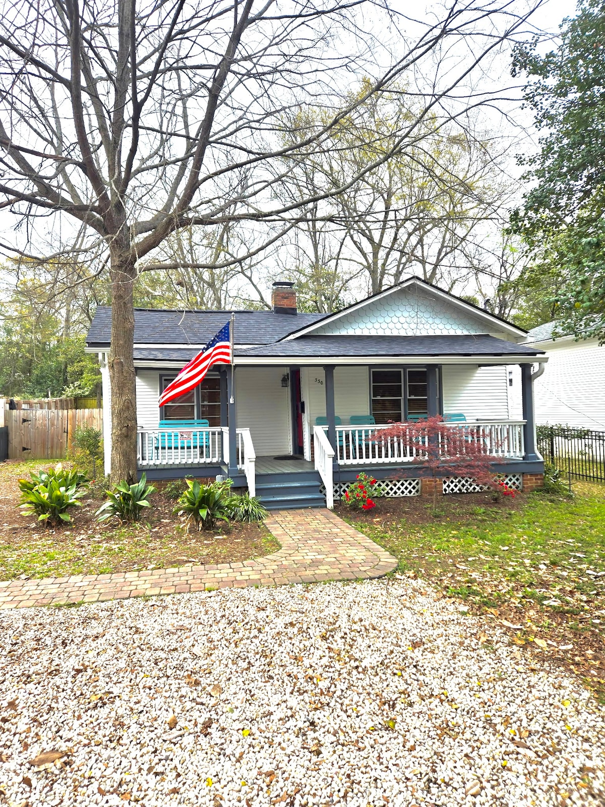 Cette maison confortable est située au centre de tout ce qu'Aiken a à offrir. Le centre-ville étant à seulement 1/2 mile à pied, des restaurants et des magasins uniques vous attendent. Le parcours de golf de Palmetto, Bruce's Field, USC Aiken et Citizen's Park sont à quelques kilomètres. Cet espace est parfait pour les couples, les familles ou même juste une retraite pour une personne seule. La maison est située dans un quartier très calme. La propriété est entourée d'arbres, ce qui la rend très privée pour une maison du centre-ville.