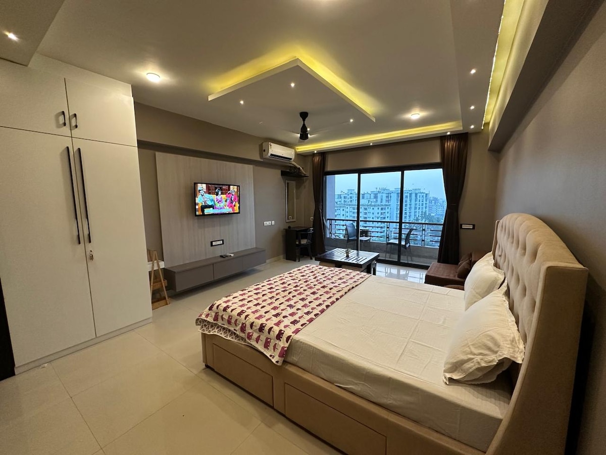 Offrez-vous le luxe de cet élégant studio situé près de l'aéroport et du centre commercial CC2. Parfait pour les couples, les familles et les amis à la recherche d'une escapade spéciale. Avec une connexion Internet haut débit de plus de 100 Mbps, cet appartement est également idéal pour ceux qui travaillent à domicile. Profitez de l'accès à la piscine et à la salle de sport sur place, et restez connecté car la propriété est bien située à proximité des principales attractions : à 6 km de l'aéroport international de Kolkata, à 1 km du City Centre II et à 2 km d'Eco Park.