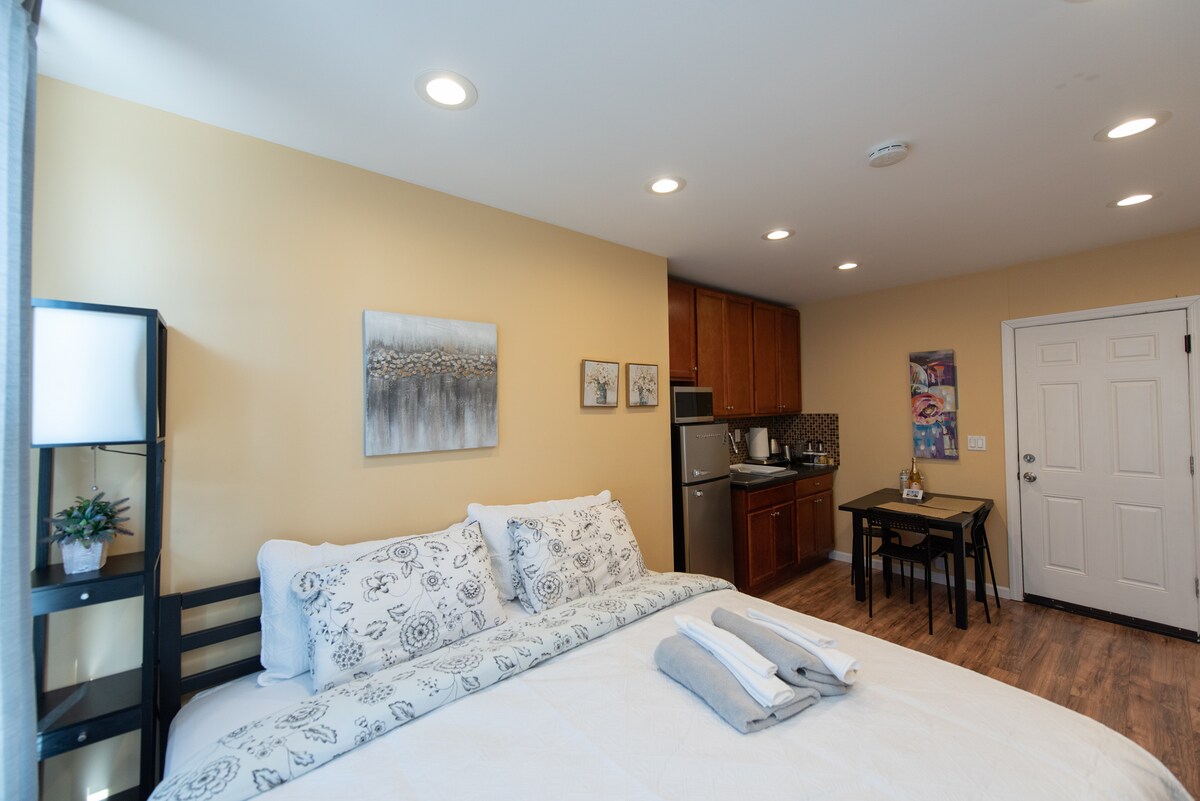 Bienvenue dans notre charmante retraite dans la ville tranquille de Bayonne, parfaitement située près du cœur palpitant de New York. Profitez de notre fonctionnalité d'arrivée autonome. Votre appartement privé entier fait écho au confort d'un hôtel 5 étoiles, avec un salon ouvert équipé de toutes les commodités nécessaires. Cuisinez dans notre cuisine entièrement équipée et rafraîchissez-vous dans la salle de bain moderne. Veuillez noter que j'ai une sonnette avec caméra qui surveille ma porte d'entrée. Oasis privée exclusive dans l'arrière-cour, rien que pour vous.