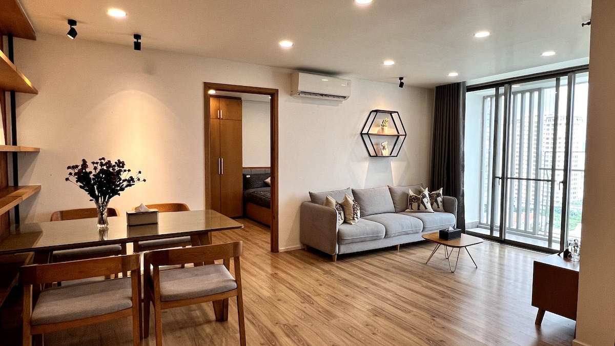 🌇 L'Ascentia - Un tout nouvel immeuble 💥 Une promotion spéciale de 20 % de réduction pour les séjours longue durée ✨ L'appartement est de 80 m² avec 2 chambres, 2 WC et des équipements entièrement meublés. Étage ✨ élevé, belle vue, avec place de parking disponible. Équipements ✨ complets : piscine d'eau salée, sauna, salle de sport, yoga, aire de jeux, toit-terrasse,... ✨ Situé dans le quartier urbain le plus moderne et le plus développé de HCM City, et offrant des services tout-en-un tels que supermarchés, restaurants, cafés, spas, banques, écoles, SECC, Cresent Mall,...