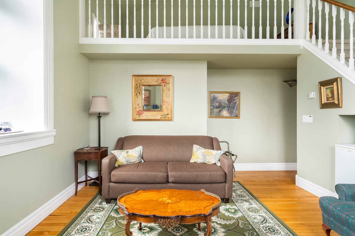 Bed and Breakfast Ora's Place Profitez d'un confort élevé sur un étage privé avec un salon chic privé, une chambre, une cuisine-salle à manger et une salle de bain privée avec une tour de douche avec jets de massage. Détendez-vous dans le salon de relaxation, puis ressourcez-vous dans le jardin avec des tapis de yoga ou de mise à la terre. Profitez d’options de petit-déjeuner et de collations toute la journée. Un séjour élégant pour les voyageurs en solo, les duos - c'est-à-dire les amis, les frères et sœurs, les couples. Environ 20 minutes à pied des chutes et du charme vibrant de Clifton Hill.