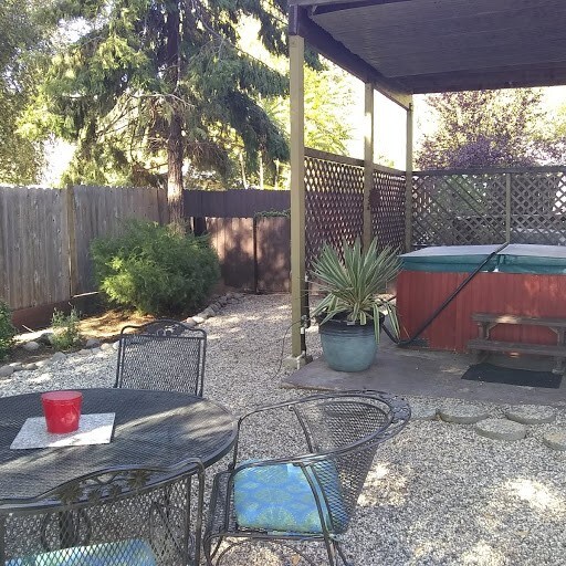 Superbe terrasse neuve avec belvédère de 3 x 3 mètres ! Vues spectaculaires sur le mont Konocti et Clearlake, le plus grand lac d'eau douce de Californie. Chalet acceptant les animaux de compagnie (B) 15 $ de frais de nettoyage pour animaux de compagnie payés dans la boîte à clé. Méfiez-vous des colibris tueurs, des cerfs bagarreurs, des cailles ultra-rapides et des dindes sauvages. 😎😜