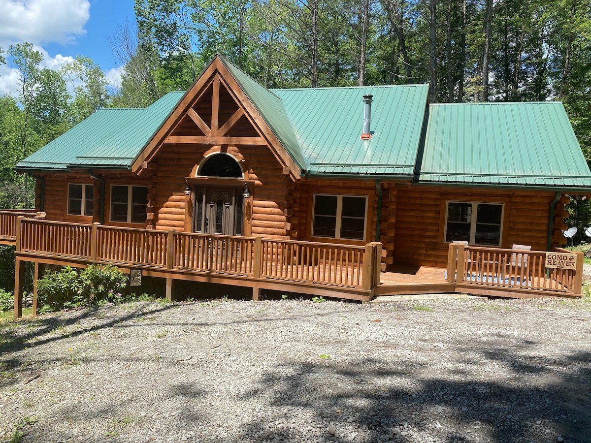 Notre chalet est à seulement quelques minutes du lac Summersville et de la rivière Gauley. Vous adorerez notre chalet, il est privé, relaxant, dispose d'une cheminée à gaz, d'un jacuzzi, d'une cuisine équipée, d'un linge de maison, d'une literie, d'oreillers, de serviettes, d'une buanderie et d'une salle de bain complète. Grande terrasse, avec table de pique-nique et barbecue à gaz. Foyer. Nous sommes au cœur du pays du rafting en eau vive, des tyroliennes, de l'équitation, des quatre roues et de la randonnée. À quelques minutes de Summersville, des parcs et des restaurants. Nous avons une vue imprenable sur les étoiles.