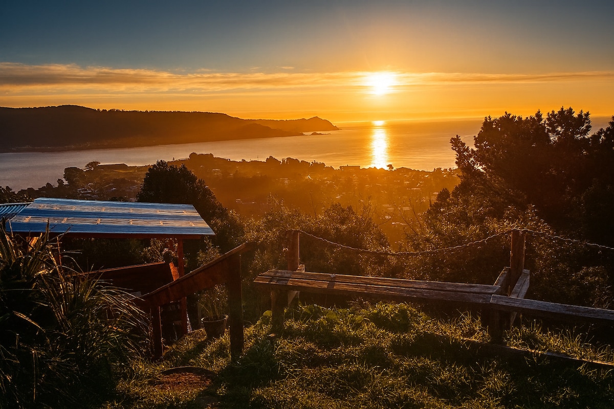 Despierta cada día con una vista inolvidable a la bahía de Corral y al inmenso mar. Este refugio para dos, parte de Mirador de Niebla, está pensado para quienes buscan descanso, privacidad y conexión con el entorno. En esta estación del año disfruta atardeceres desde el Refugio la intensidad de la lluvia y el viento , el sonido del océano. A pasos del Castillo de Niebla y de la playa grande, es un lugar para recordar.