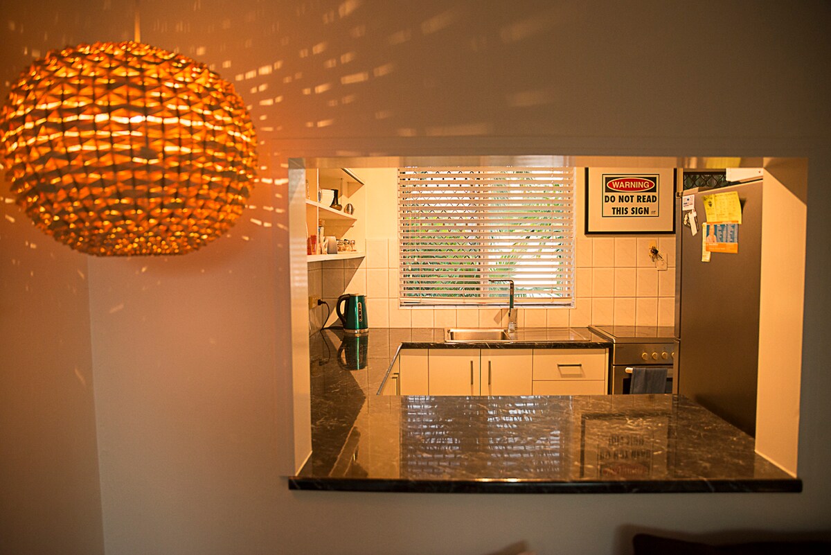 Profitez d'une expérience élégante dans ce logement paisible et central. Convient à 2 couples ou à la famille. Entièrement climatisé avec 2 chambres, 1 lit queen size avec salle de bain attenante, 1 lit double avec lit pliant simple. 2ème salle de bain séparée avec douche. Grand balcon avec ventilateur d'extérieur pour dîner ou se détendre. Comprend 2 aires de stationnement sécurisées. À distance de marche de l'estran, de la piscine publique, des marchés de restaurants et des magasins. À 10 minutes en voiture de l'aéroport et à 15 minutes de Darwin City. À proximité des arrêts d'autobus.